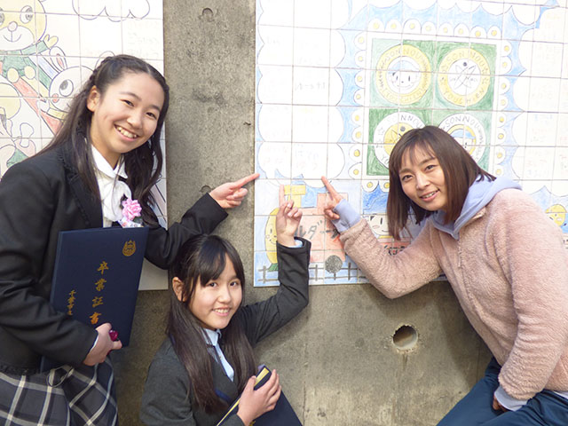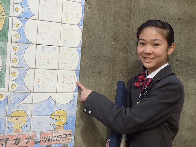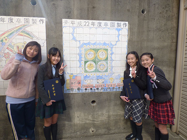 今日のお昼頃に、嬉しいお客様が幼稚園に来てくれました小学校を無事に卒業しましたと素敵な姿を見せに来てくれました卒園製作タイルを見ながら懐かしいね~見~つけたしっかり残っていますね 記念にパチリ卒業の報告に来てくれてとっても嬉しかったですありがとうご卒業おめでとう ございます