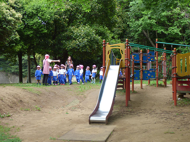 クラス毎に公園内を探検![]()