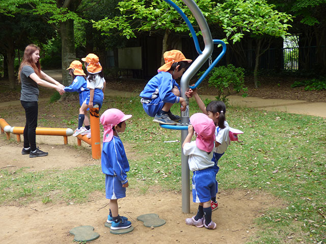 年長組さんが、優しくリードしながら一緒に遊ぶ姿は、とても微笑ましく素敵な姿でした![]()