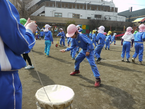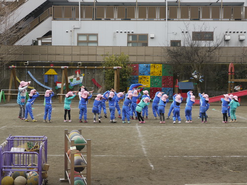 』って合い言葉をいいながらみんなで体操をします!楽しい準備体操で見ていると心が和みます!