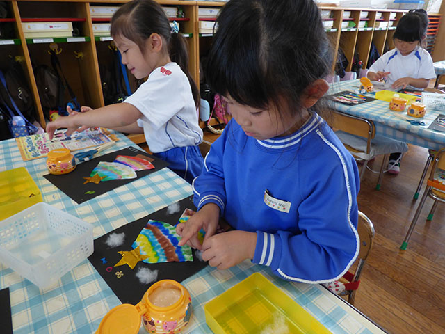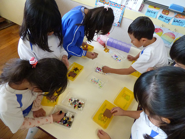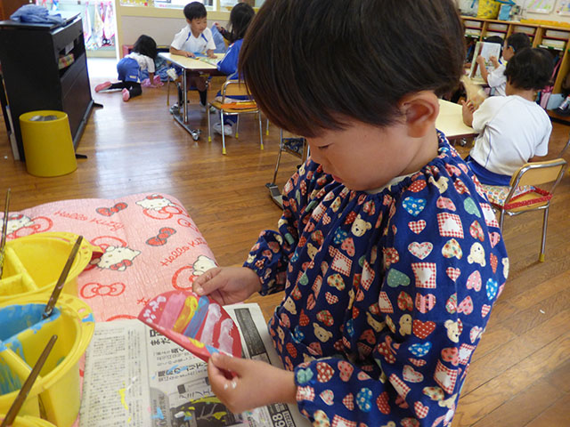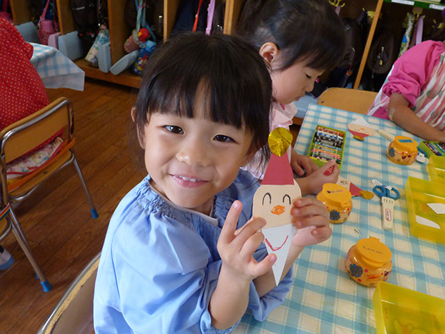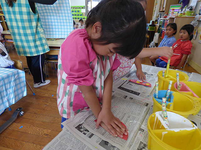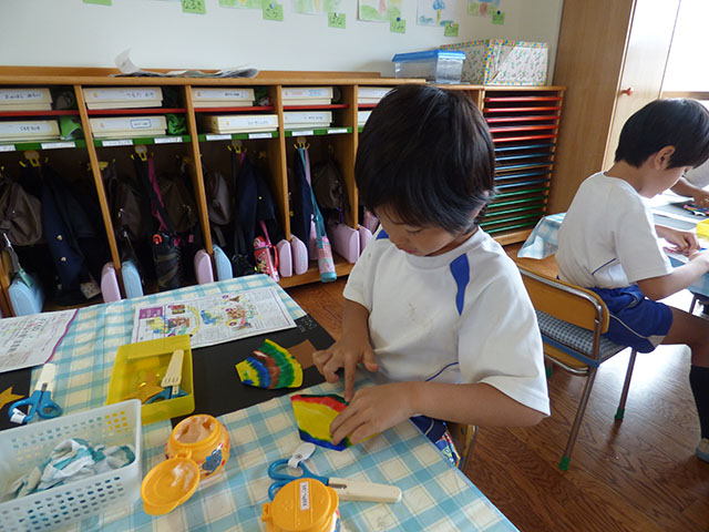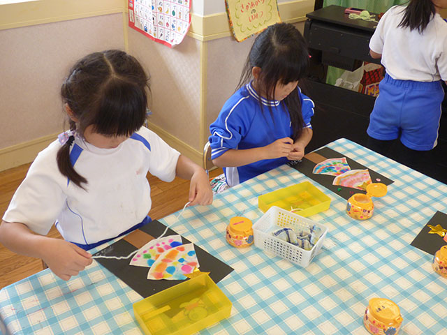 年少組は各クラスで考えられた壁面に取り組んでいました