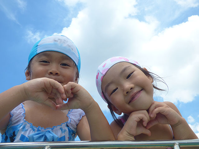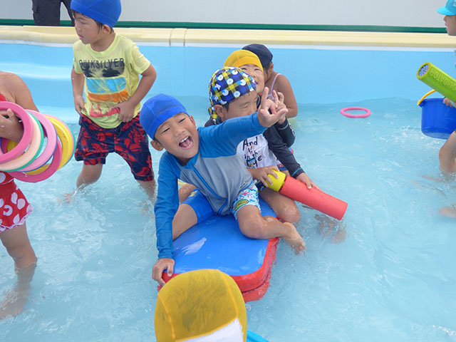 まずは、プール遊び