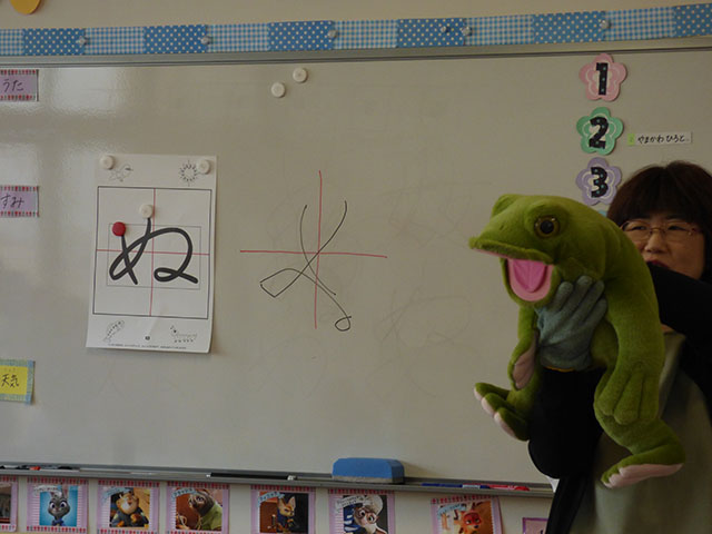 がま君と一緒に「ぬ」を書いてみます