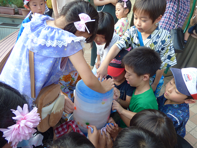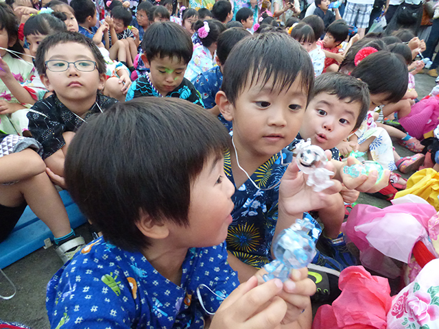 卒園児のお友達も沢山遊びに来てくれたおかげで盛大な夕涼み会を行うことが出来ました