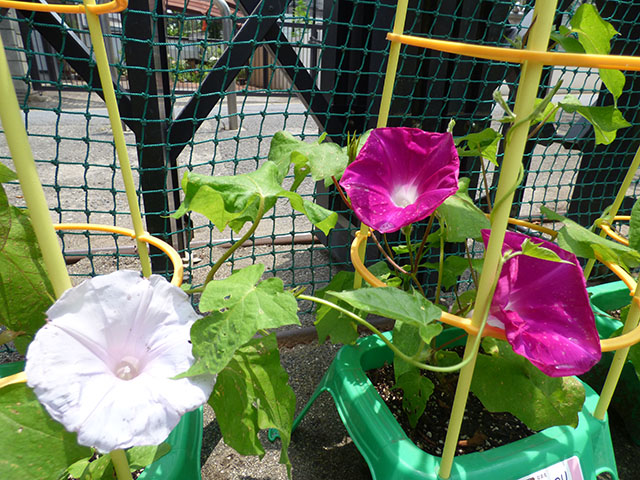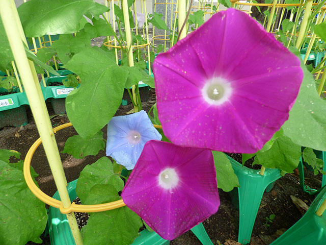 あさがおに花が咲き始めてきました