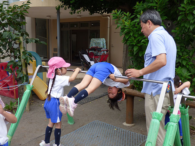 園長先生に鉄棒を頑張ってる所を