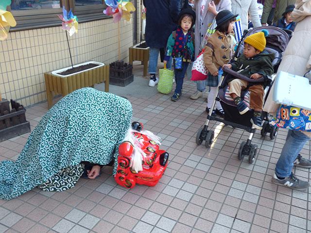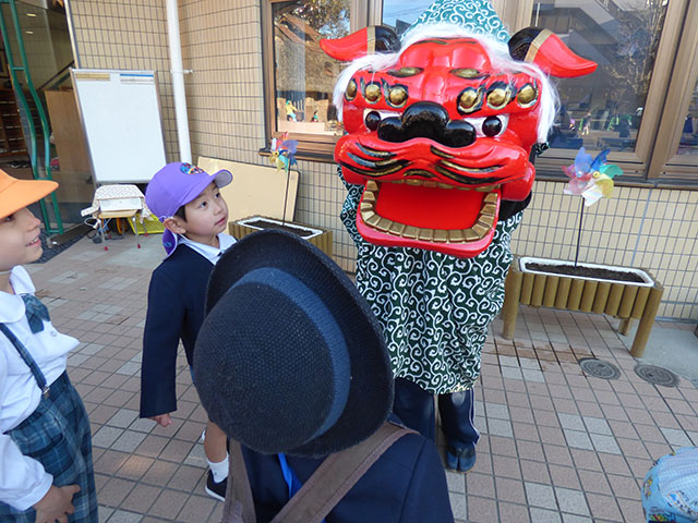 朝から獅子舞がみんなをお出迎え