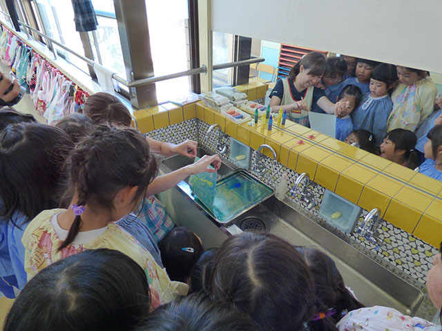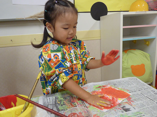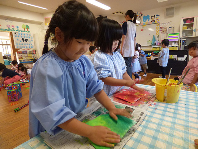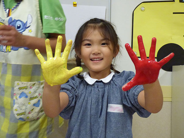 年少組、年長組では、絵の具の活動をおこないました