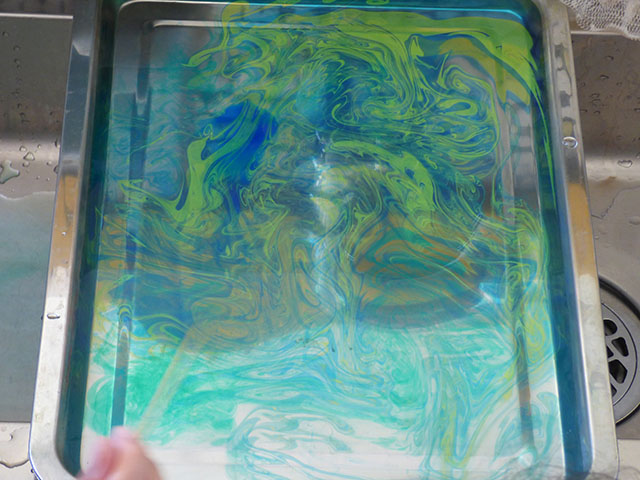 水に専用の絵の具を垂らし