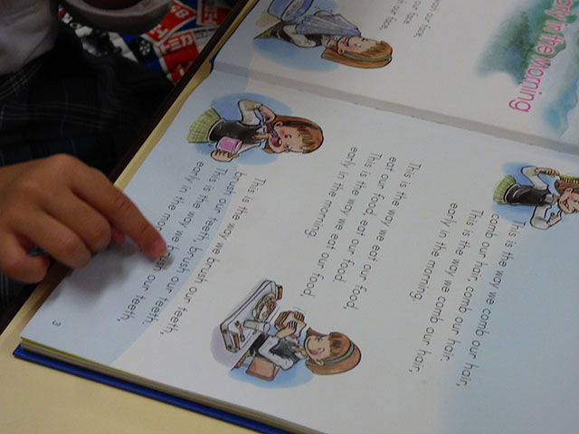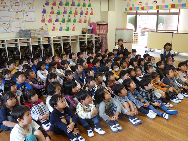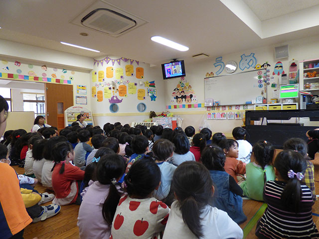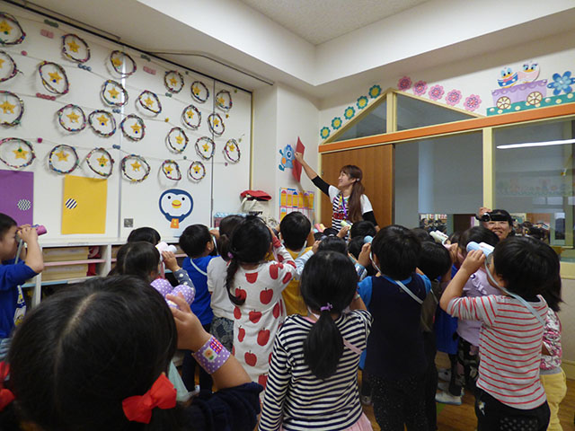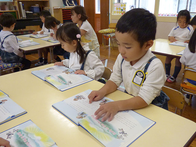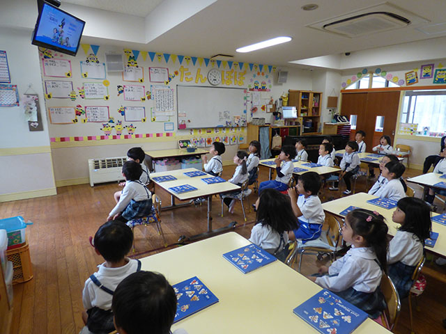 今日の年中組の英語教室は、REP教材を使った英語教室でした