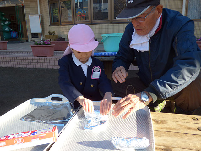 お芋をホイルで包んで