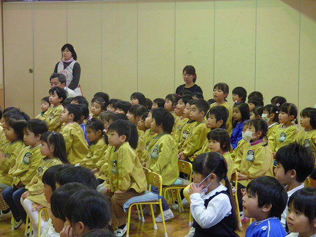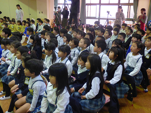 年長組さんは、初めての衣装に照れくさそうにしながらも、