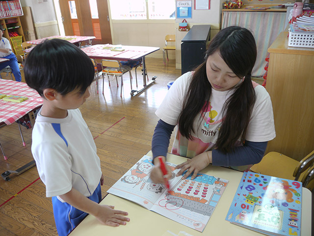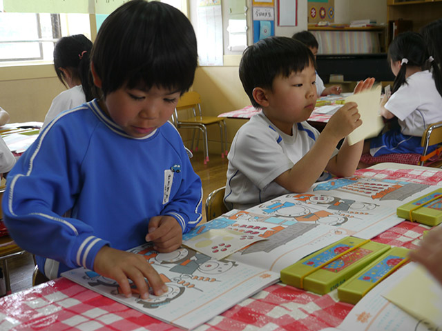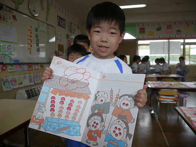 お団子屋さんの『あわせて5』のページに挑戦です!
