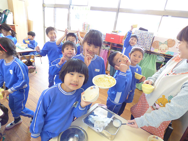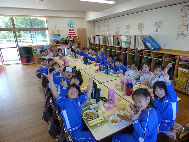 年長組にとっては、幼稚園最後の給食
