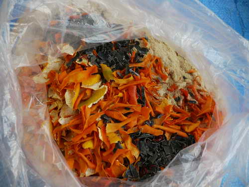 干したみかの皮と柿の皮、昆布に赤唐辛子、三温糖、塩をおいしく調合して
