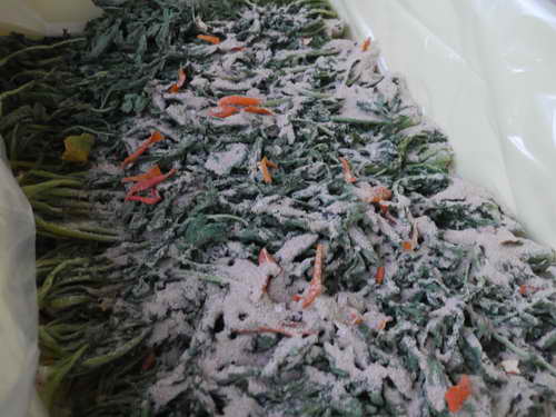 最後は葉っぱでふたをしておいしさをギュ~っと閉じ込めてたくあんをつけました