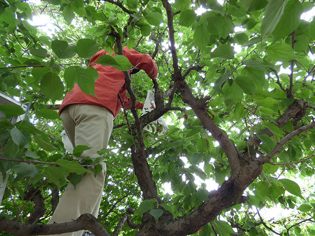 高いところの実も