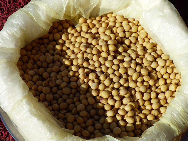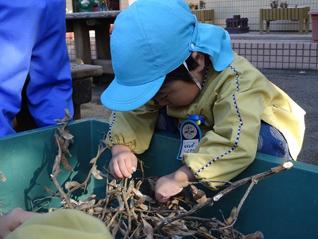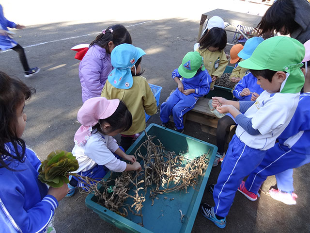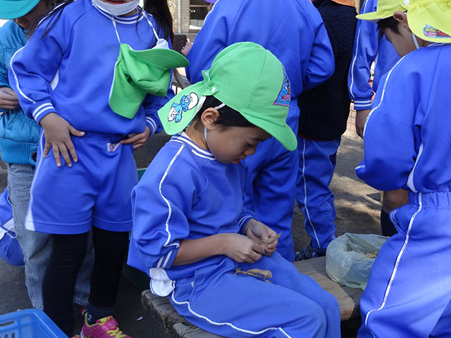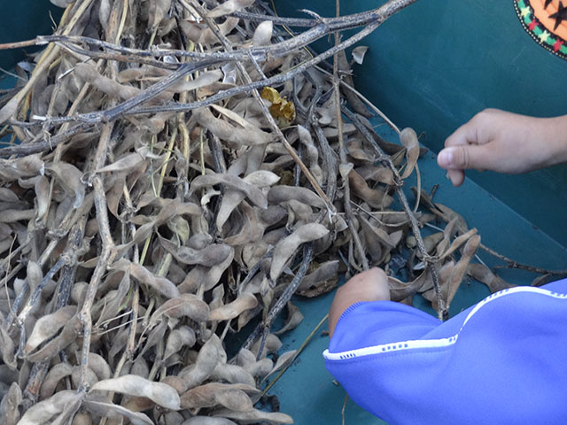 この大豆を、年長組さんに”石臼”でひいてもらい、