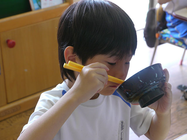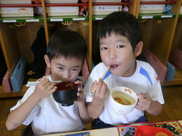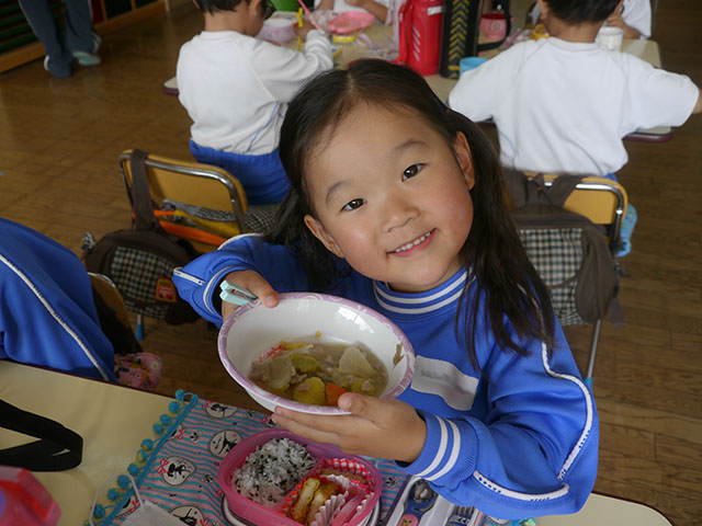 お昼に あったかい芋煮汁を
