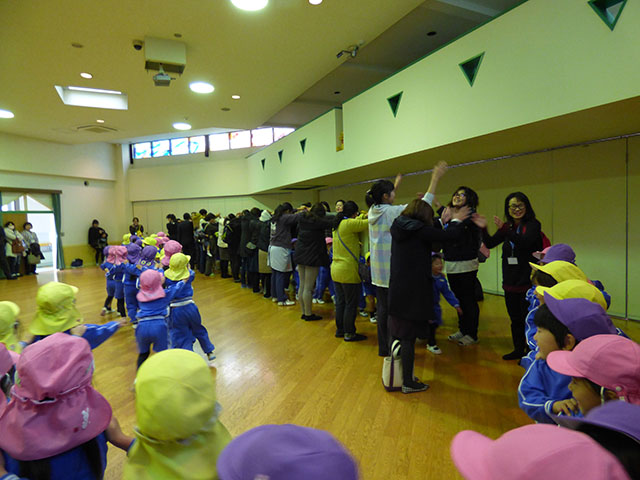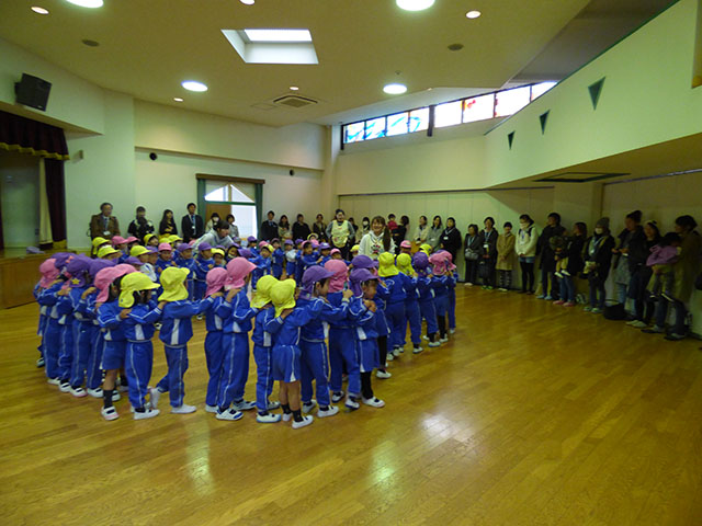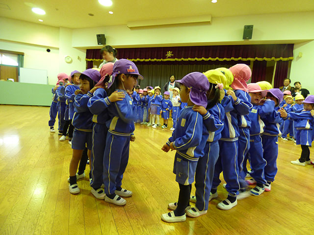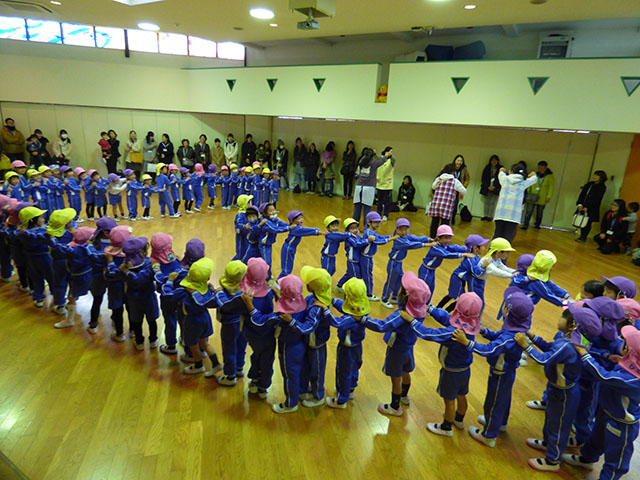 お遊戯室で学年集合