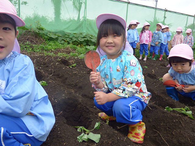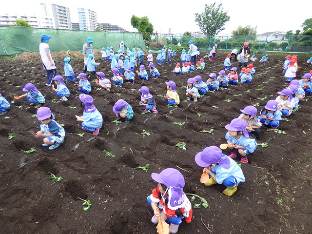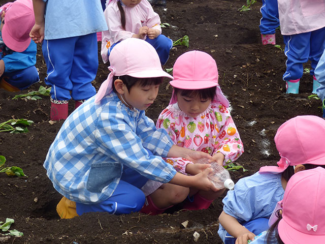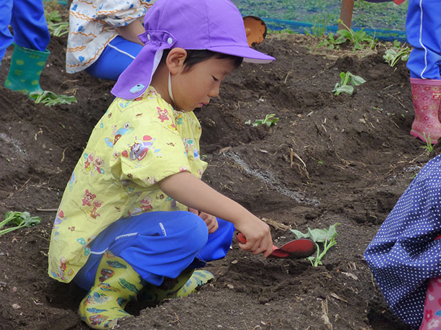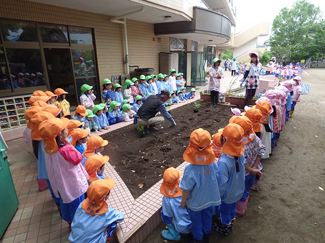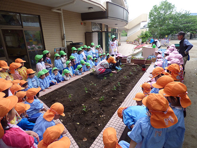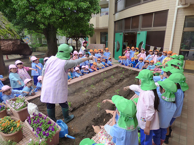 幼稚園で野菜の苗植えを