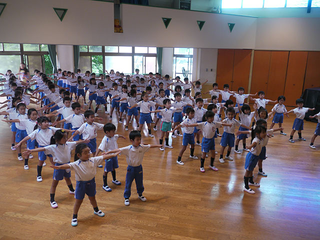 運動会のお遊戯練習を、楽しんでいました