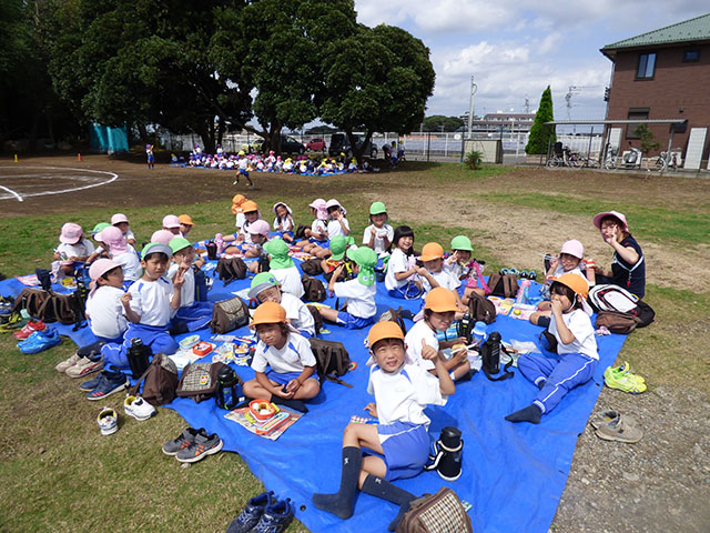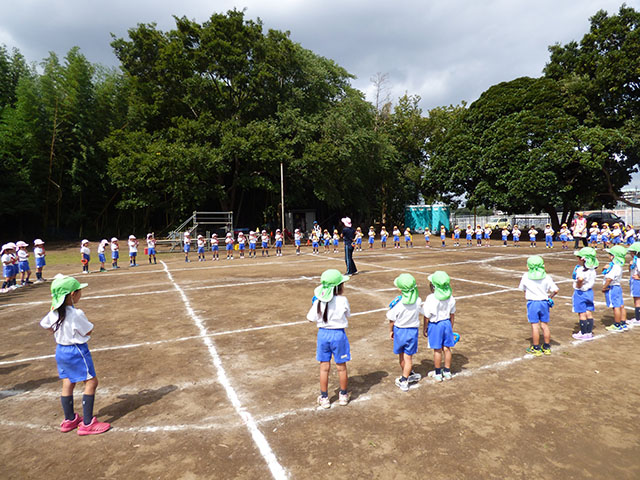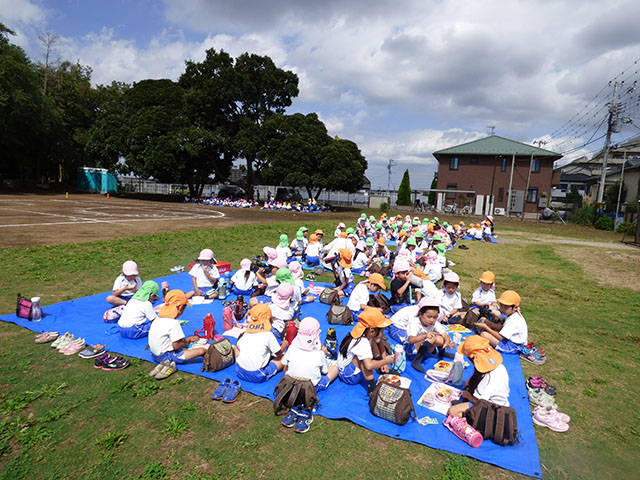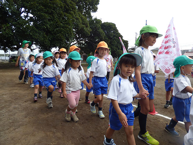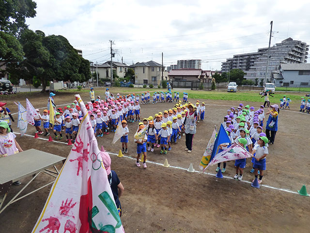 今日は、グランドで全体練習を行いました貴重な晴れ間の全体練習まずは入場行進年長組さんと手をつなぎしっかり行進です代表のお友達も緊張感のある中、しっかりと流れを覚えますカッコイイ~学年練習も一生懸命年中組のパラバルーンだんだん技を覚えて来ました年長組のお遊戯細かい所をしっかり合わせられるようにしていきます年中・年長組はグランドでお昼ご飯を食べました年中組さんも・・・年長組さんもクラス関係なく色々なお友達と一緒にご飯外で食べるご飯も美味しいね~今日は、どの学年もたっぷり運動会練習を行いました真っ黒になった姿は頑張った証本番に素敵な姿を見ていただけるように残りの練習も頑張ります
