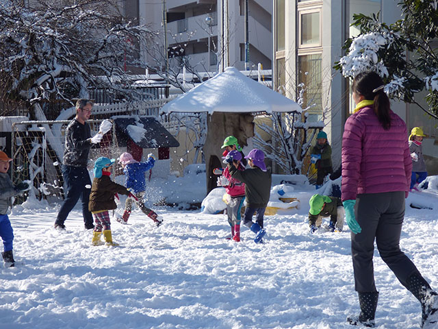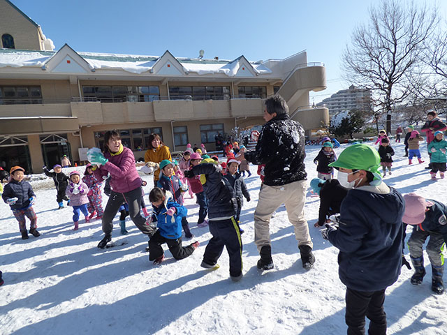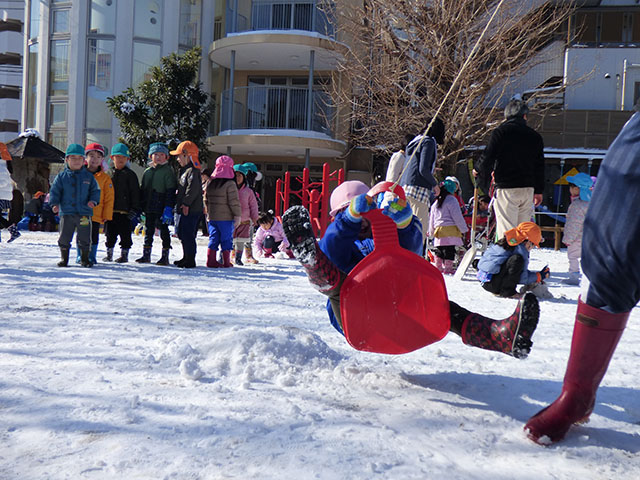 先生達もあまり味わえない雪遊びに、子ども達と本気になって遊びました