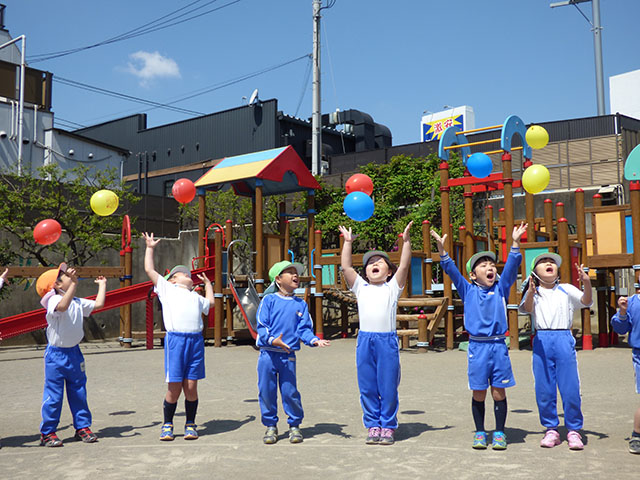 風船と一緒に年長組さんの思いも空に飛んで行きました
