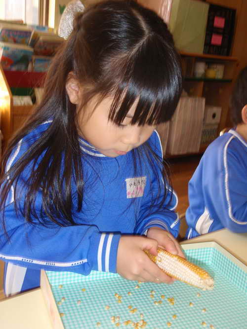 なんと年中さんが苗植から草取りもして丹精込めて育てあげたポップコーンなんです!