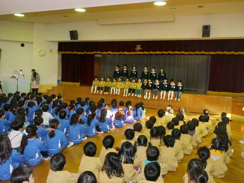 突然、年長さんが年中さんのお部屋に『ポップコーンありがとう!おいしっかたよ!!』ってお礼を伝えにきてくれました。嬉しかったね♡