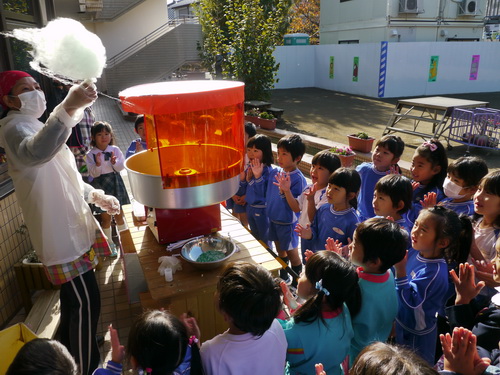 オレンジ色のわたあめ作りの機械で作ってくれた『わたあめ