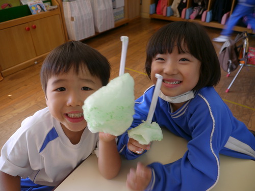 つぶつぶからふわふわに変身した今日のおやつの『わたあめ』