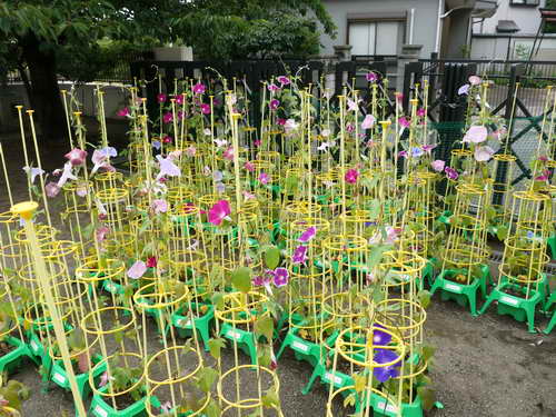 朝顔もピンク薄ピンクや紫、赤紫、水色などなど色鮮やかにお花を咲かせてくれています