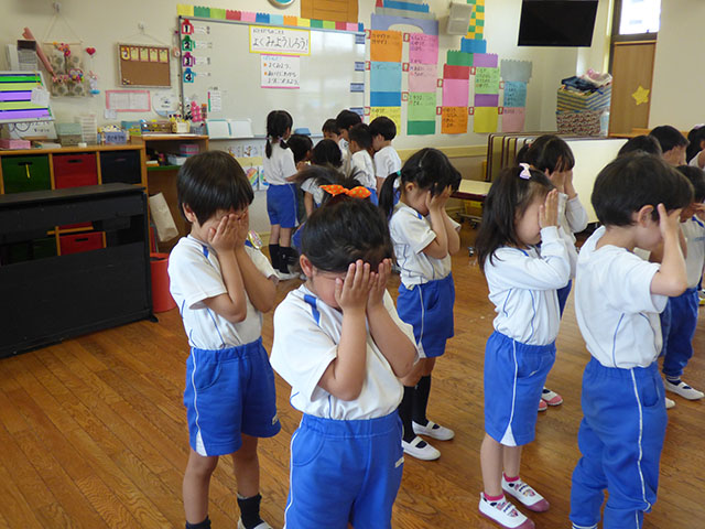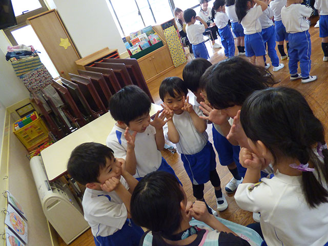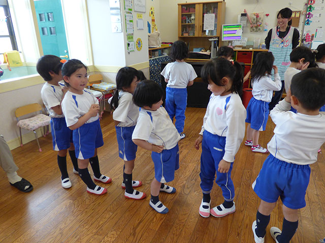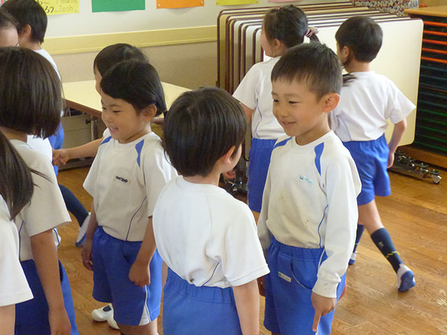 お友達の目をよく見て挨拶と自己紹介![]()