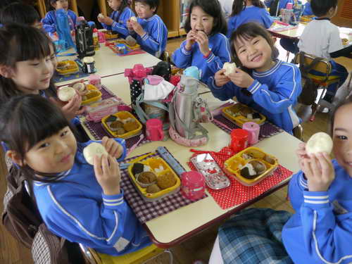 みんなと一緒にたべると100倍くらいおいしさがいっぱいになるね