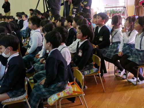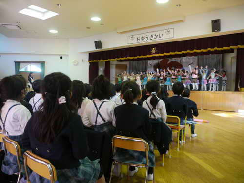 年長さんは、年中少さんのお遊戯会の成功を願い