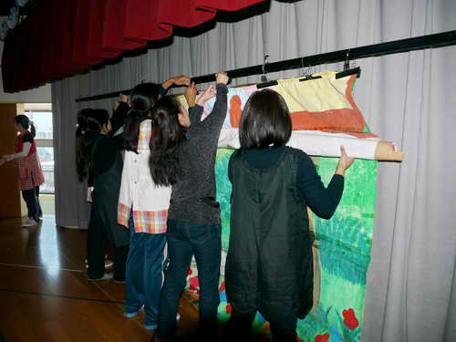 突然うしろの絵が変わることがありますが、これは『テグス』と言います。瞬間で絵が変わるところがスゴイですよ!