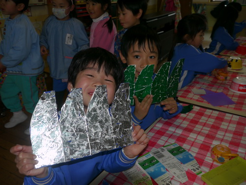 女の子はCupラーメンの廃材でじゃじゃ~ん!!