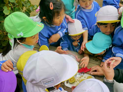 そこで、こうれいのようちえんでいちばんかっこいい先生からみんなにちょっとずつのおすそわけ・・・「ちょうだいちょうだい」の声が響きわたります