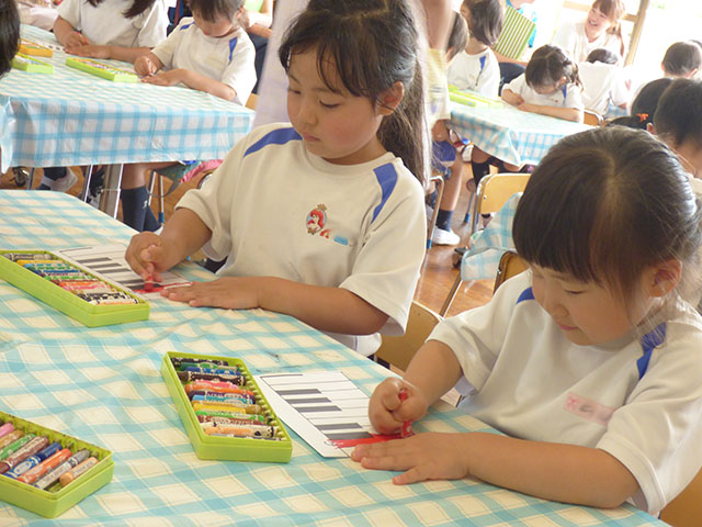 七夕音楽会に向けて、お友達に見てもらうことやお友達の姿を見ることによって、大きな刺激を受け、やる気に繋がっていきます