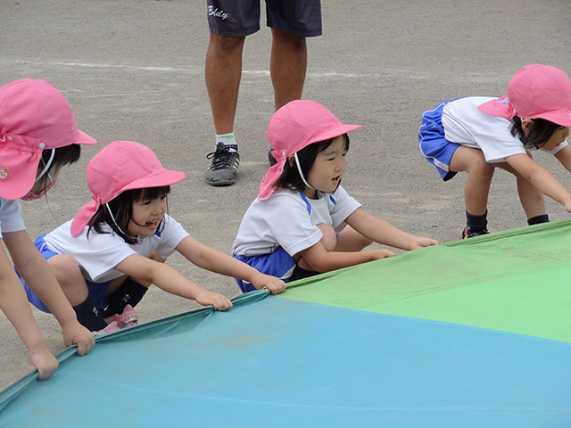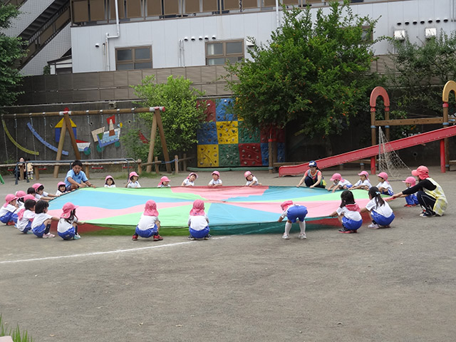 年中組さんの体操教室で、”パラバルーン”を行いました