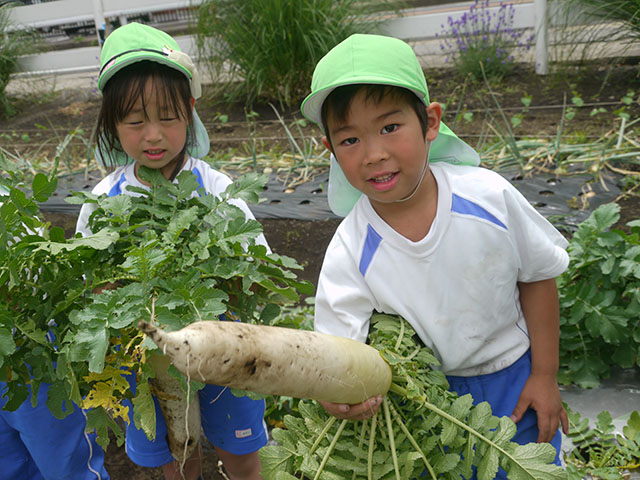ちょっぴり虫食いもあるかもしれませんが、手作りの美味しい大根!