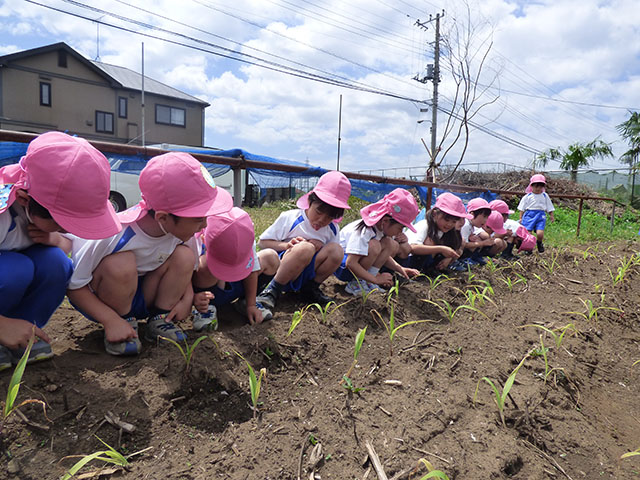 グランドでは苗を観察