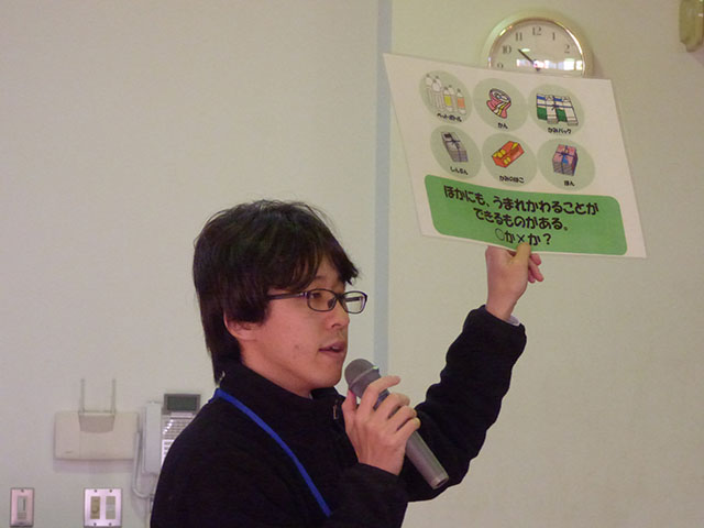 材料の話を聞き、