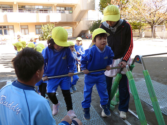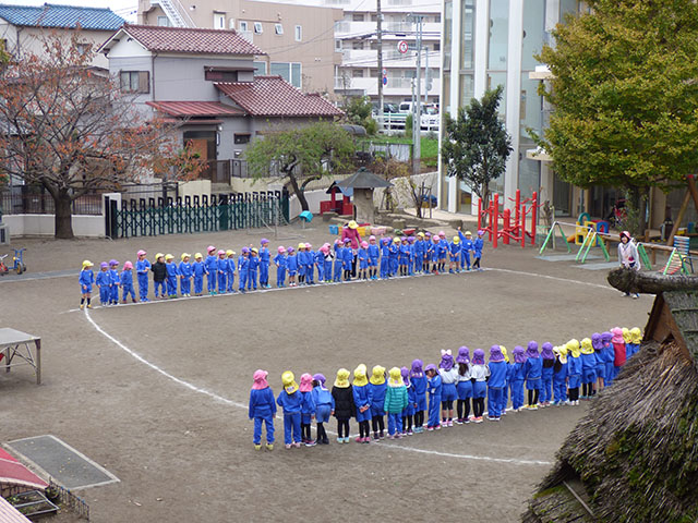 ちょっぴり怖がるお友達もいましたが、避難訓練のために、みんなにわかるように来て貰っただけだよ