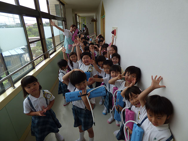 になりながらも、重たいピアニカをしっかり持ち、大きな音で吹く姿に