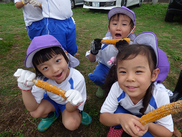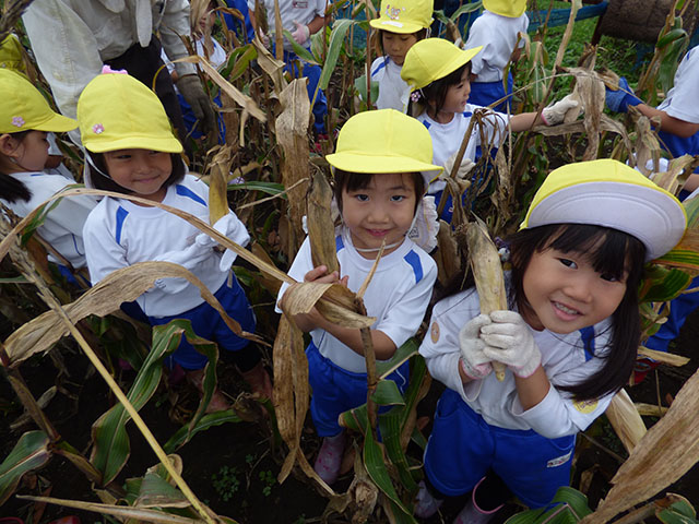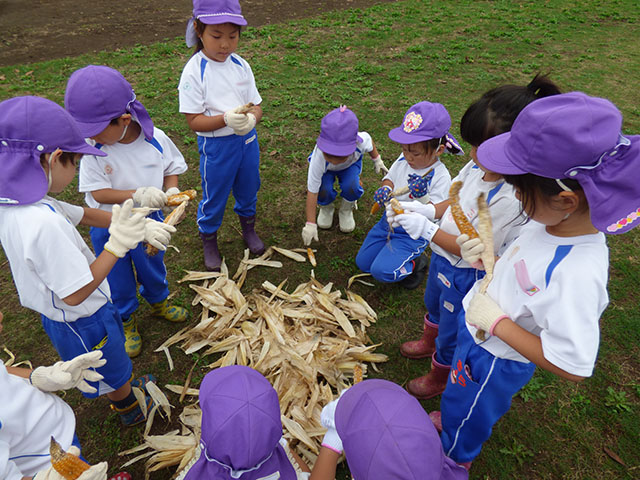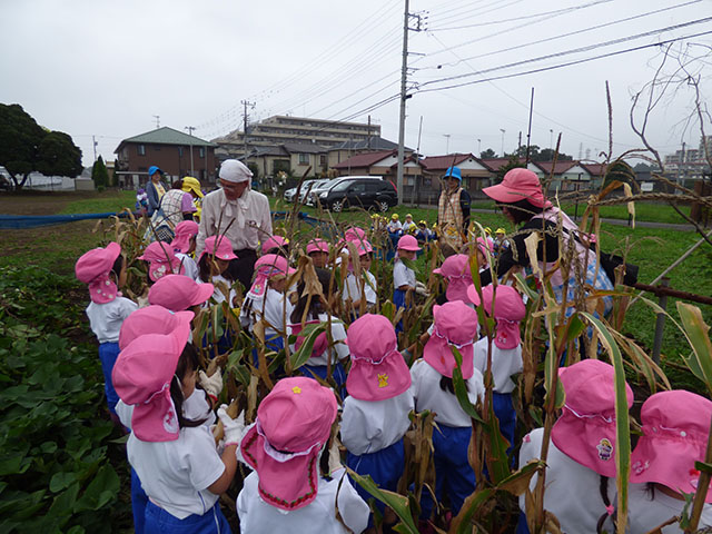 今日は、年中組でポップコーン収穫に行きました