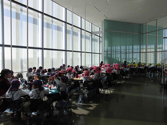 展望デッキで昼食タイム