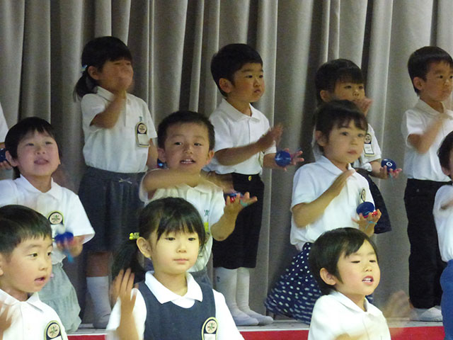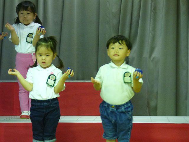 カスタネットを持ち、ステージに並んだ姿は、ちょっぴりドキドキ